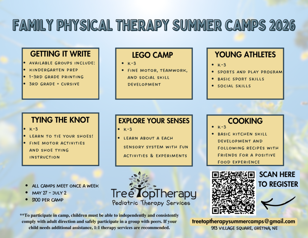 Tree Top Therapy offers a variety of camps that are typically offered in the summer months. These camps serve as a great way to continue to practice skills they learned during the school year. Camp offerings may change year to year, but the following are typically offered regularly. Spots are limited, sign up today!